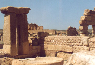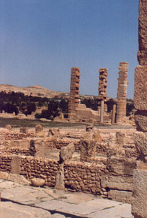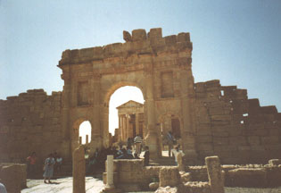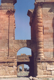 par l'arc d'Antonin le Pieux, porte monumentale à 3 arches que l'on fermait par des vantaux. |