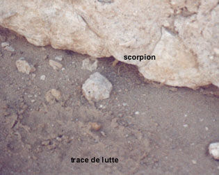 Jaune de taille moyenne ce scorpion dangereux fut grâce à un verre d'eau froide anesthésié et tué par un guide. |