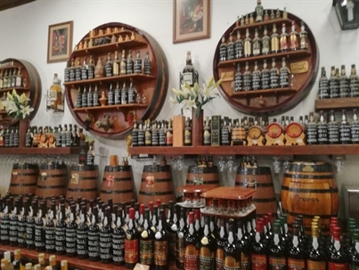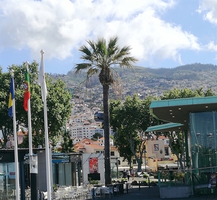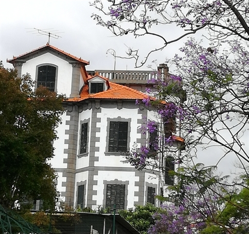 Flânerie dans les rues pour rejoindre le musée Da Quinta das Cruzes puis une dégustation de Madère tout en admirant quelques portes peintes, quelques remarquables calages de galets et la floraison bleue des jacarundas.