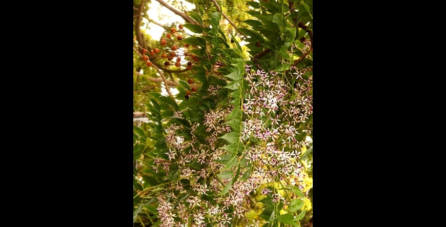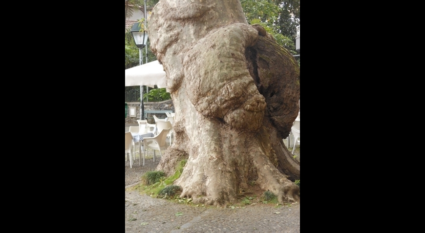 Le jardin d'un hôtel 5 étoiles, avec des arbres magnifiques.