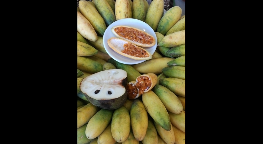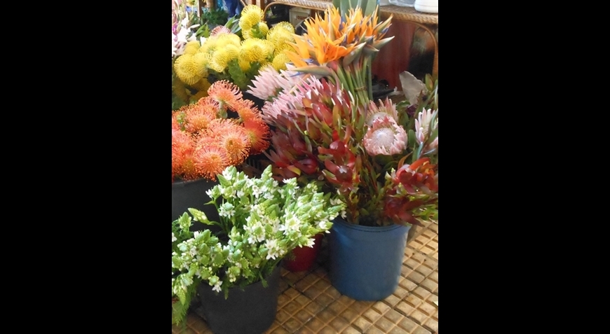 Fruits cultivés dans l'île, poissons pêchés au large et bouquets de fleurs extraordinaires animent ce marché.