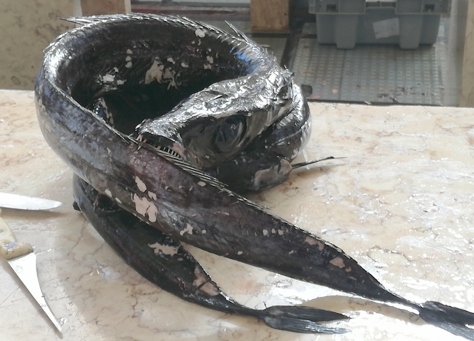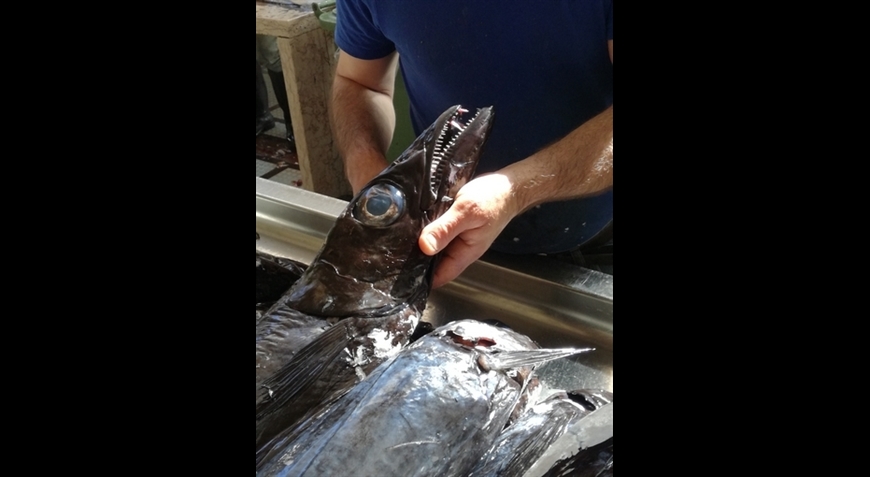 Le sabre noir, pêché au large de Madère qui finira dans notre assiette accompagné d'une banane et d'une sauce au fruit de la passion