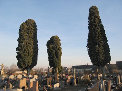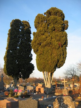 Une dizaine de cyprès en plusieurs points de ce cimetière