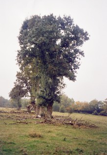 en ensemble de 17 vieux arbres centenaires, taillés en tétard, disposés en 2 rangées plus quelques isolés