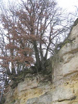Il s'agit de chênes qui s'accrochent à la roche troglodytique