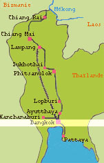 9 novembre 2001, après 14 heures de vol, nous voici en l'an 2541. A peine arrivés à l'hôtel ballade sur les klongs et premières impressions. Les trois journées passées à Bangkok nous ont permis de découvrir le marché flottant de Damnoen Saduak le grand Palais et le Wat Phra Kaeo le Wat Pho Chinatown le quartier chinois et une ferme d'élevage de crocodiles. |