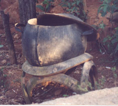 prendre un vieux pneu de camion, le retourner,