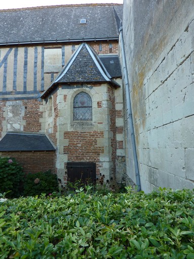 Tout le pan de mur avant la porte d’entrée est uniquement en briques, avec une ouverture en plein cintre éclairant la chapelle qui à l’origine devait terminer le premier édifice qui pourrait dater de la fin du XV ème siècle.