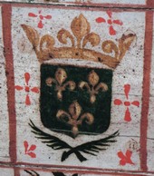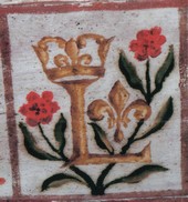 Le plafond est entièrement peint et forme environ 175 panneaux ornés de motifs tous différents : feuillages, couronnes d’épines, instruments de la passion, monogramme du christ, têtes d’angelots ailés. L’écusson aux trois fleurs de lys occupe une surface plus grande mais se trouve répété en d’autres endroits.