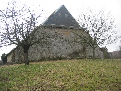 petit tour de Grange aux Moines, en ce début d'année --- les élus actuels n'ont pas les mêmes objectifs que les précédents, --- les travaux promis, à grands renforts d'affichages électoraux, sont abandonnés --- tout comme le bâtiment dont l'état se détériore chaque jour un peu plus --- on voit très bien le trou dans la toiture en très mauvais état |