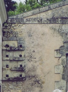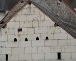 sur le pignon d'un des bâtiments de la ferme,