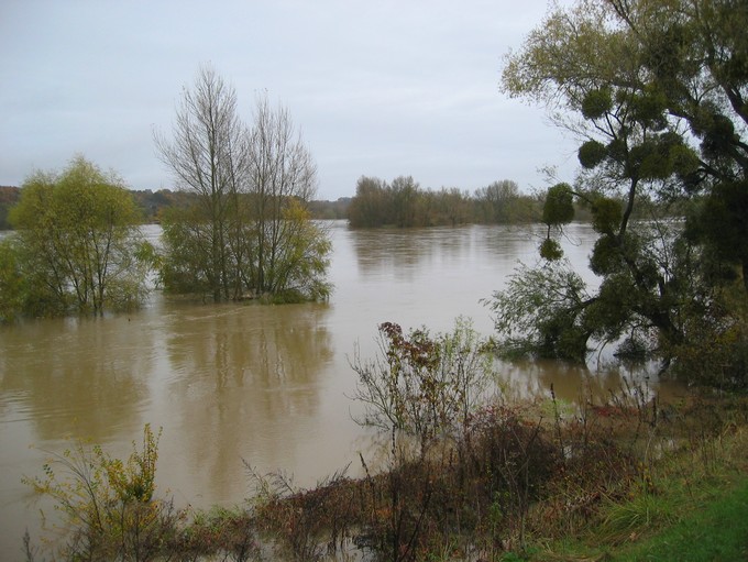 Les eaux du Cher (qui n'est pas en crue), retenues par