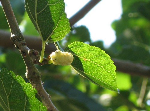Ci-dessus le fruit comestible qui va mûrir d'ici le mois de septembre.