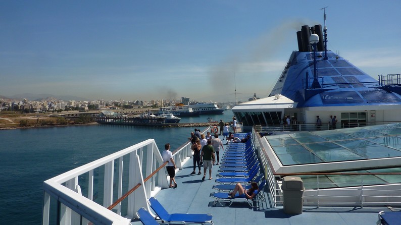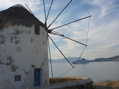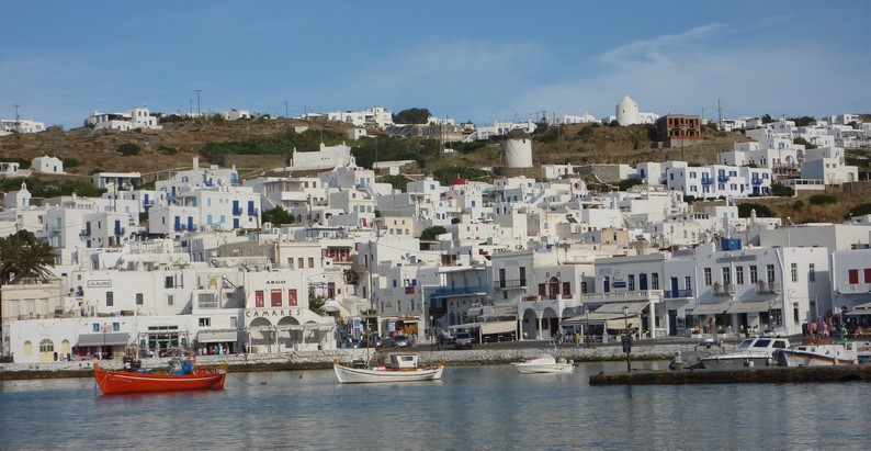 Début de la navigation vers Mykonos. Ile blanche et bleue, elle est la plus cosmopolite et la plus animée des îles grecques |