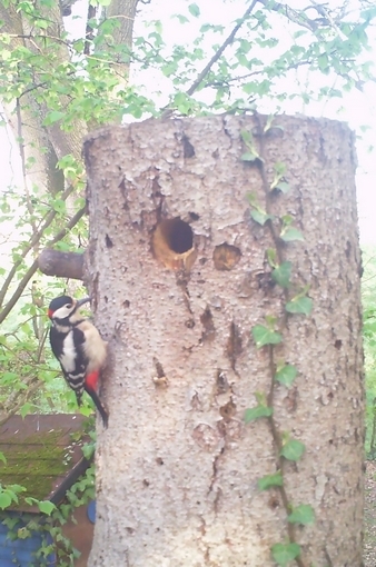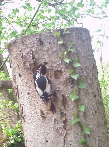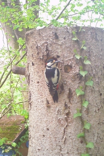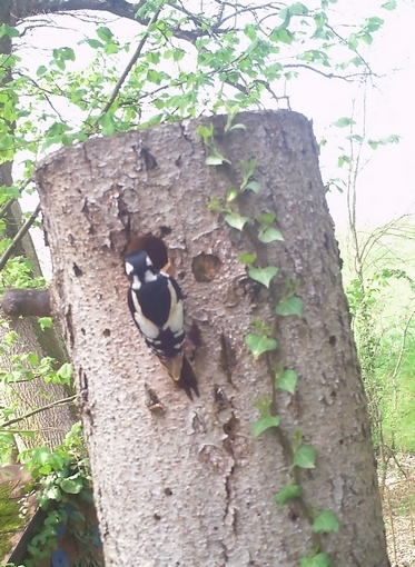 28 mars 2022 sur un conifère face à la maison, le mâle en plein travail