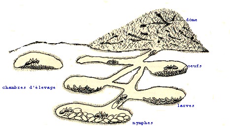 Dans la fourmilière, il y a des salles reliées entre elles par des galeries bien assez larges pour permettre