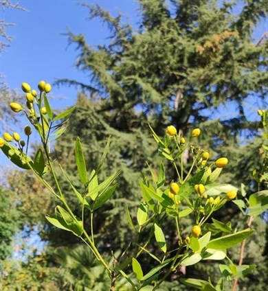Arbuste semi-persistant de climat doux et de sol bien drainé, au port étalé, apprécié pour sa très longue floraison estivale et automnale jaune canari. Les fleurs sont réunies en grappes de 15 à 30 cm de long. Rustique jusqu'à -5°C, il doit être protégé en hiver et remisé en climat frais. On peut le planter dans un grand pot pour orner la terrasse.