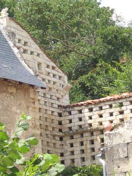 A Seuilly le volet (petit colombier bourgeois) de la Devinière est riche de 288 boulins à flan de mur...