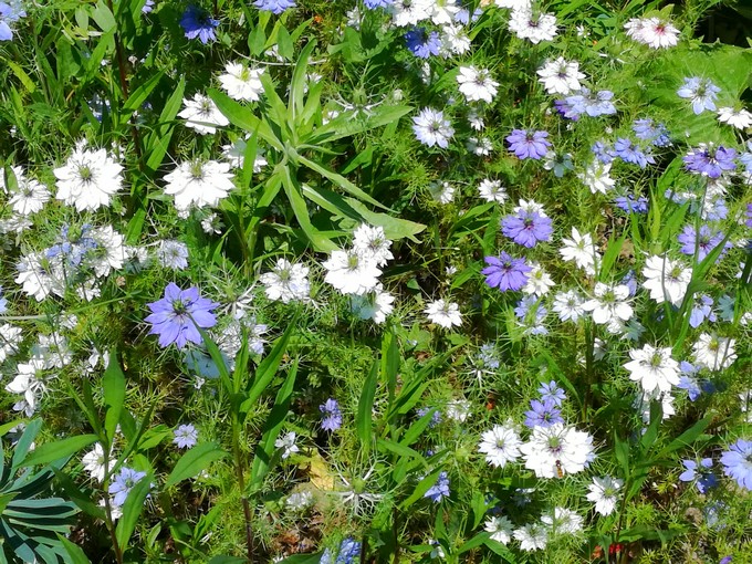 nigelles de Damas qui vont donner de très belles capsules, emplies de graines commestibles au délicieux goût de fraise. |