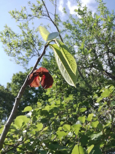 tree. Le fruit charnu, l'asimine, est une baie comestible de forme