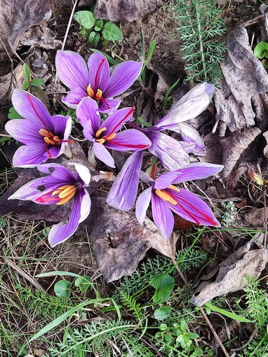 belle récolte de safran dont les bulbes sont au pied du tulipier