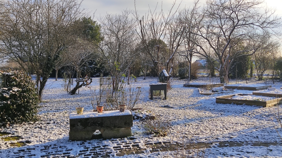 Le jour de Noël, une fine couche de neige à recouvert le jardin